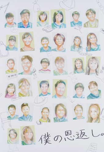 「地元に恩返しがしたい」という小玉さんの夢を基に、小玉さんの教え子たちが成長し、活躍することが「恩返し」であり、「教え子たちが活躍する姿が一番の恩返しである」をコンセプトに設定して制作しました。コンセプトを基に、小玉さんの教え子たちの小学生時代の似顔絵と現在の似顔絵を並べて配置する構成とし、キャッチコピーの文字には小玉さんが書いた文字を採用しました。
