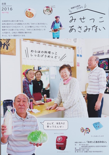 「みせっこあさみない」をきっかけに若い人が浅見内地区に興味をもってほしいと思い、お店を紹介するポスターを制作しました。つい手に取りたくなるような雑誌の表紙をイメージして、店の温かな雰囲気と渡邊さん、スタッフのみなさんのあたたかさを写真で表現しました。店名の「みせっこあさみない」をキャッチコピーとして使い、雑誌のタイトル風にレイアウトして目を引くようにしました。